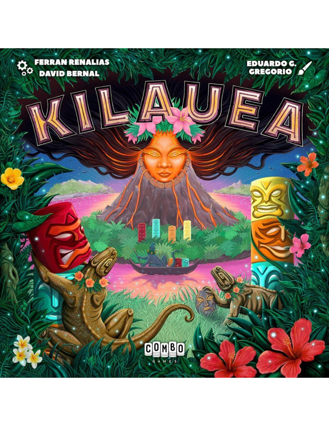 Kilauea, de David Bernal y Ferran Renalias, es un juego con reglas muy sencillas, pero con un sistema de puntuación que obliga a los jugadores a estar siempre atentos a cómo cambia el número de Tikis de cada color en cada zona volcánica y a gestionar con inteligencia dónde y cuáles colocar en su isla personal.