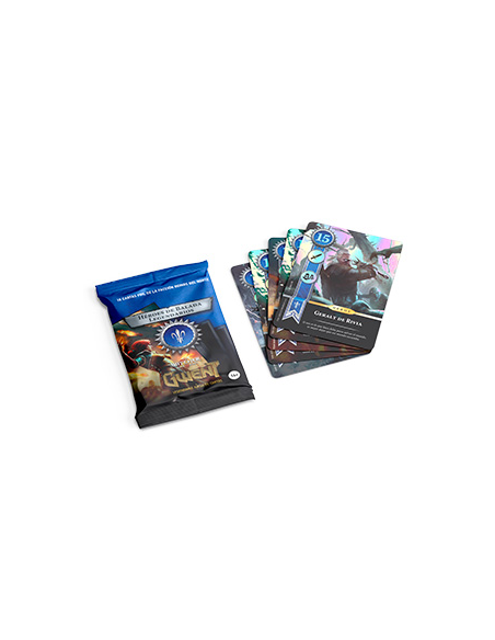 " Haz que tu mazo de Gwent sea legendario! El set de cartas neutrales de Gwent «Héroes de Balada» ofrece cartas alternativas que plasman personajes de las baladas de Dandelion en todo su esplendor." Componentes: 10 CARTAS FOIL DE LA FACCIÓN REINOS DEL NORTE