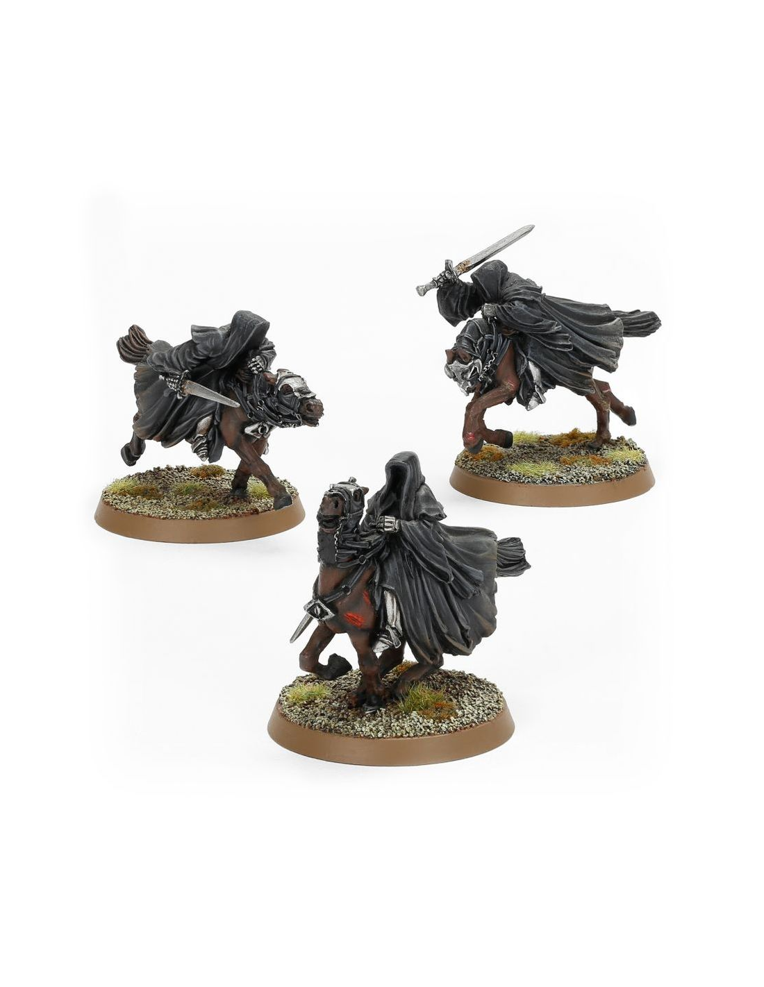 Espectros del Anillo, Nazgûl, los Nueve, los Jinetes Negros... Estos son los nombres de los temibles servidores no muertos de Sauron. Antaño eran los reyes de las razas humanas a los que Sauron les regaló anillos de poder. Sin embargo, fueron corrompidos por el poder del Señor Oscuro y cayeron en la nada más absoluta; sus cuerpos se volatilizaron y sus mentes sucumbieron a la malicia y la crueldad. Ahora sirven a Sauron con tesón, puesto que son esclavos totales de su voluntad.
