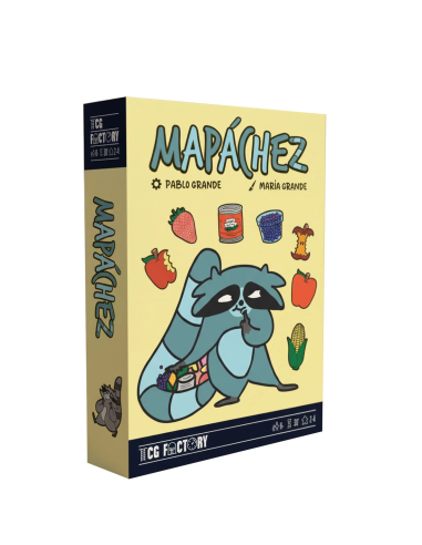 Un juego de cartas de engaño y set collection. Diseñado por Pablo Grande. Ilustrado por María Grande. ¡Rebusca, engaña y gana el botín más sabroso! En Mapáchez te transformas en un mapache dispuesto a todo por conseguir las delicias que los humanos han tirado a la basura. Frutas, latas, azúcar