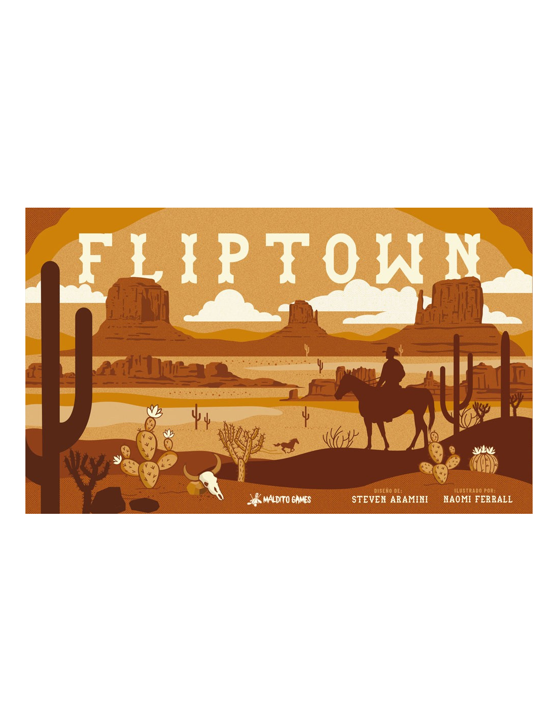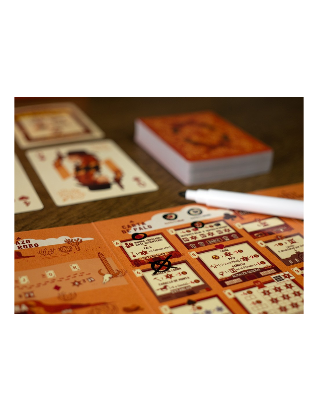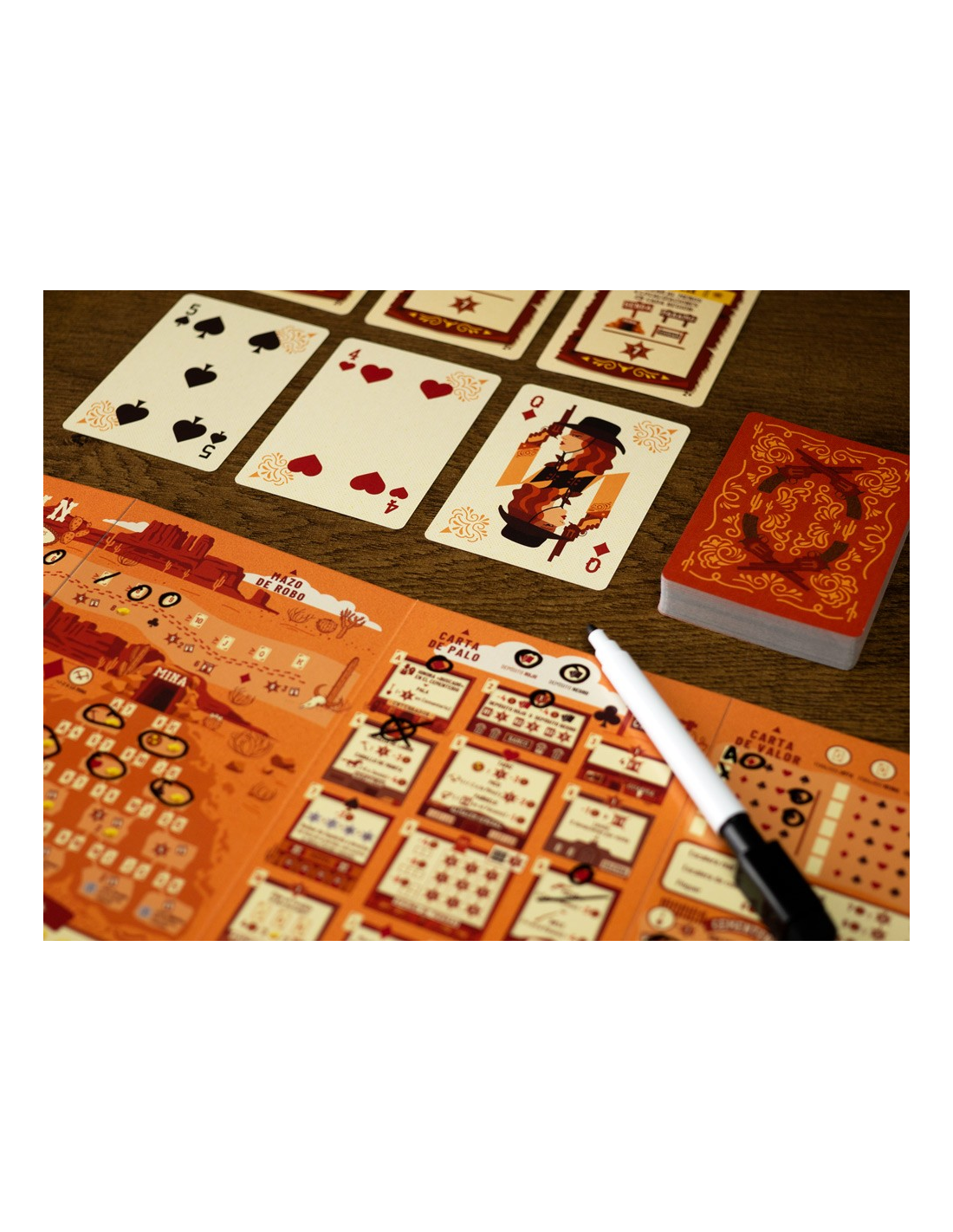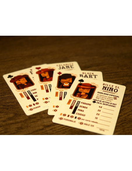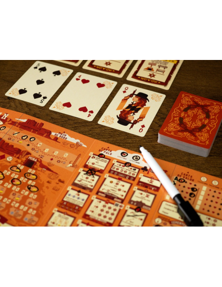 Fortuna y gloria te aguardan en el Salvaje Oeste. Pero, ¿cómo te ganarás las espuelas en esta tierra indómita? ¿Ayudarás a asentar una ciudad? ¿Abrirás una ruta hacia nuevos descubrimientos? ¿Buscarás oro? ¿O serás un fuera de la ley? Tú eliges tu destino en este salvaje y sesudo juego de flip & write (revelar y escribir).