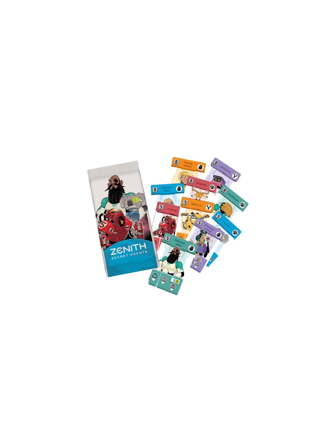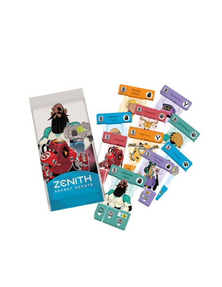 Zenith: Secret Agents es una expansión de Zenith que añade 10 nuevas cartas de Agente dispuestas a infiltrarse en tus partidas. Con ellas, la acción se vuelve más intensa y estratégica, porque ahora tendrás que estar muy pendiente de lo que tu rival tiene bajo control. *Se necesita el juego base para jugar.