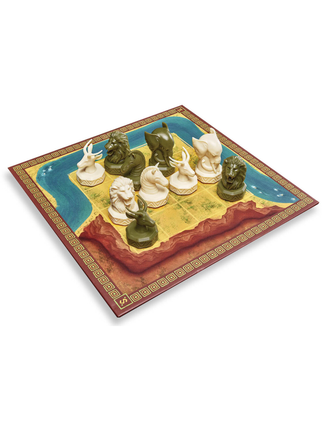 ¡Gobierna el Serengueti! Strategeti es un juego de estrategia divertido, rápido y alocado para 2 jugadores con reglas sencillas. ¡Fácil de aprender, pero difícil de dominar! ¡Intenta dominar el Serengeti colocando y moviendo ingeniosamente a tus animales en el tablero de 4x4! Los elefantes repelen a otros animales, incluso llevándolos al río infestado de cocodrilos o al barranco. Los leones se comen a las gacelas y a las cebras. Las gacelas pueden saltar sobre otros animales, ¡incluso varias veces en un turno! Las cebras, por fin, pueden correr libremente en cualquier dirección. ¡Haz que colaboren y maximizarás tus posibilidades de ganar! Para dominar el Serengeti y ganar el juego, coloca 4 de tus animales en una línea horizontal, vertical o diagonal, elimina 5 de los animales de tu oponente o bloquéalos para que no se muevan. El tablero de juego a doble cara tiene diferentes puntos de entrada y lo que te desafiará a cambiar completamente tu estrategia entre los dos niveles de juego.