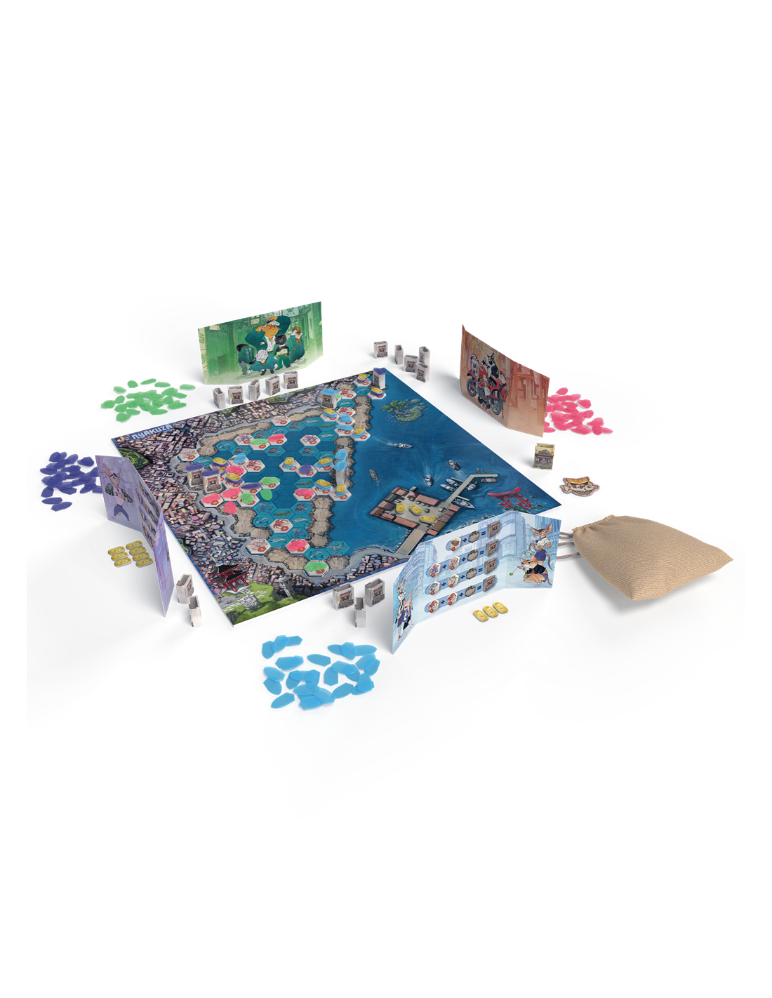 Nyakuza es un juego competitivo para 2-4 participantes en el que intentarás erigir tu imperio pesquero.