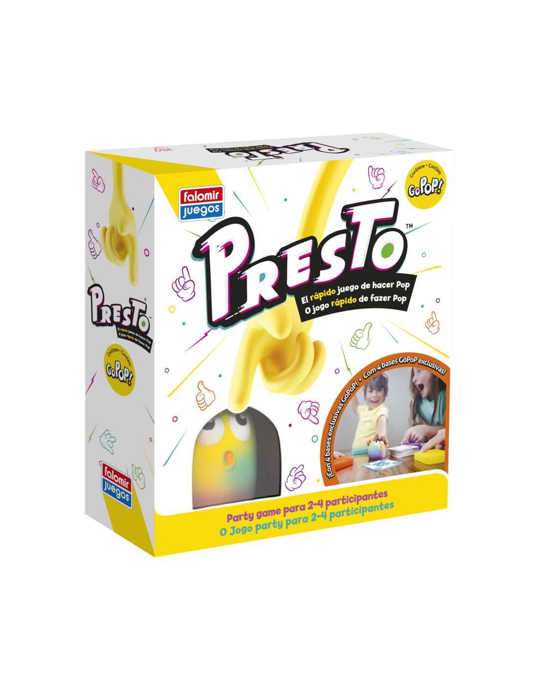 Date prisa en hacer Pop a las burbujas. Completa los retos de las tarjetas Presto y coge a la Sra. Burbuja para hacerte con la victoria. Agudiza tu vista, tu coordinación y tus reflejos con este divertido juego para toda la familia.