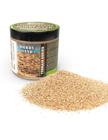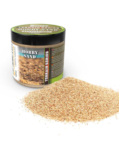 La arena de modelismo es un material indispensable en cualquier mesa o taller un modelista ya que es ideal para construir terrenos realistas en dioramas, decorar peanas de miniaturas para wargames, y muchos otros hobbies creativos. Fabricado en un material facil de pegar y de pintar, además está disponible en una amplia gama de colores y tamaños, lo que permite elegir la opción más adecuada para cada proyecto. Al aplicarse a la base o suelo de una maqueta, imita las texturas y características naturales de los paisajes reales, aportando un alto nivel de detalle y autenticidad.