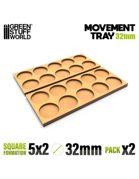 Con este set podrás crear 2 bandejas de movimiento warhammer® compatibles en formacion 5x2 para peanas redondas de 32mm