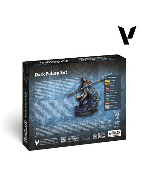 En Squidmar Miniatures estamos orgullosos de presentar Dark Future Set. Una selección de pinturas, cuidadosamente elegidas para ayudarte a generar una gran cantidad de efectos, desde una atmósfera nocturna, sombras dramáticas y efectivas e incluso metales no metálicos.