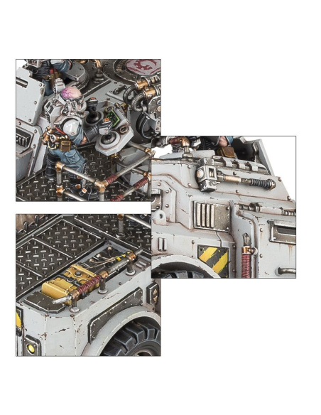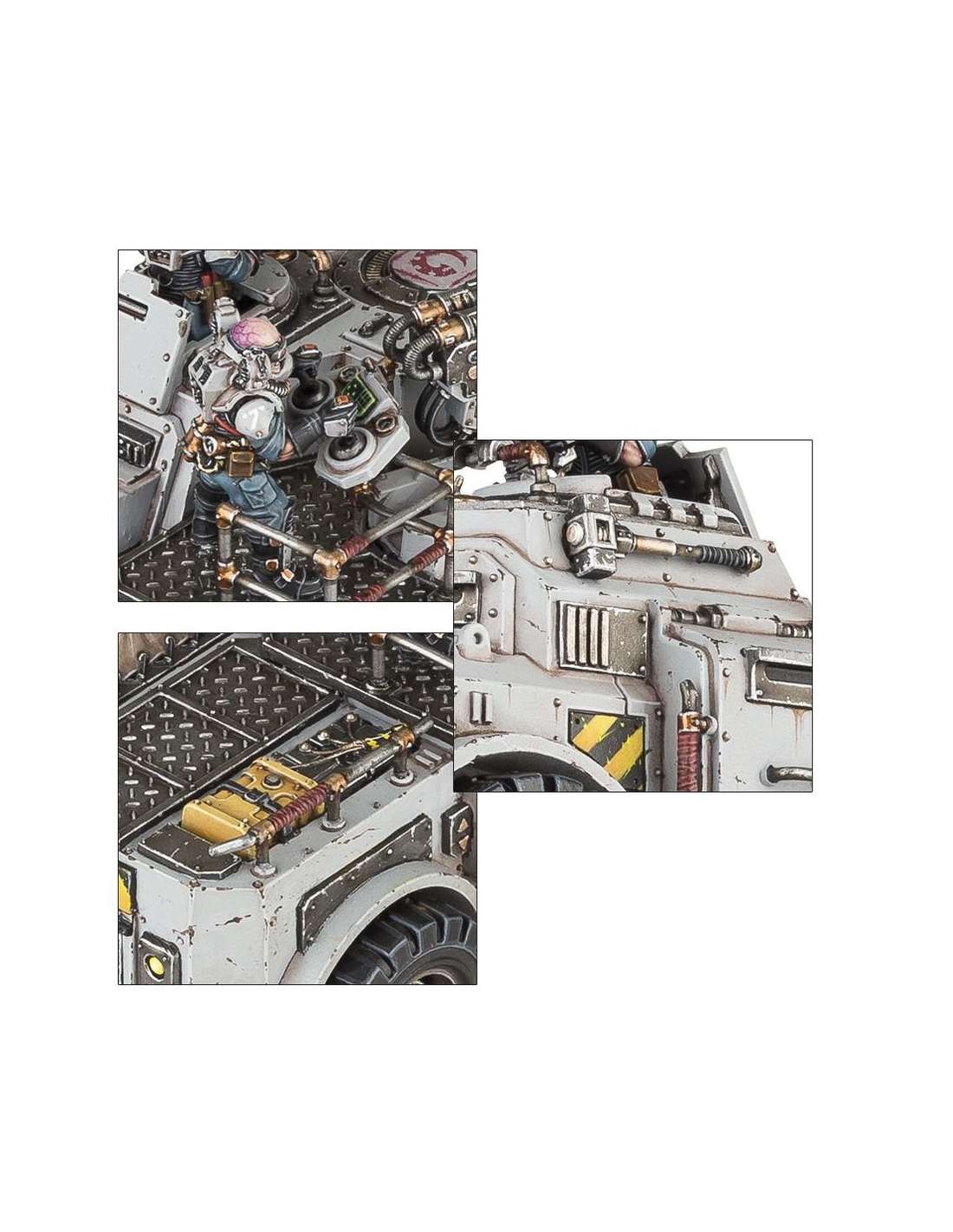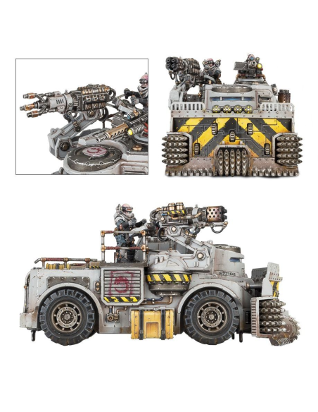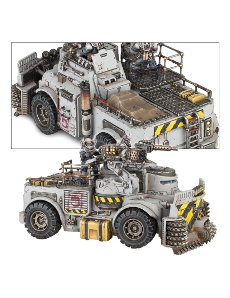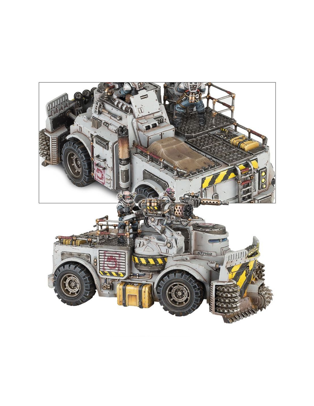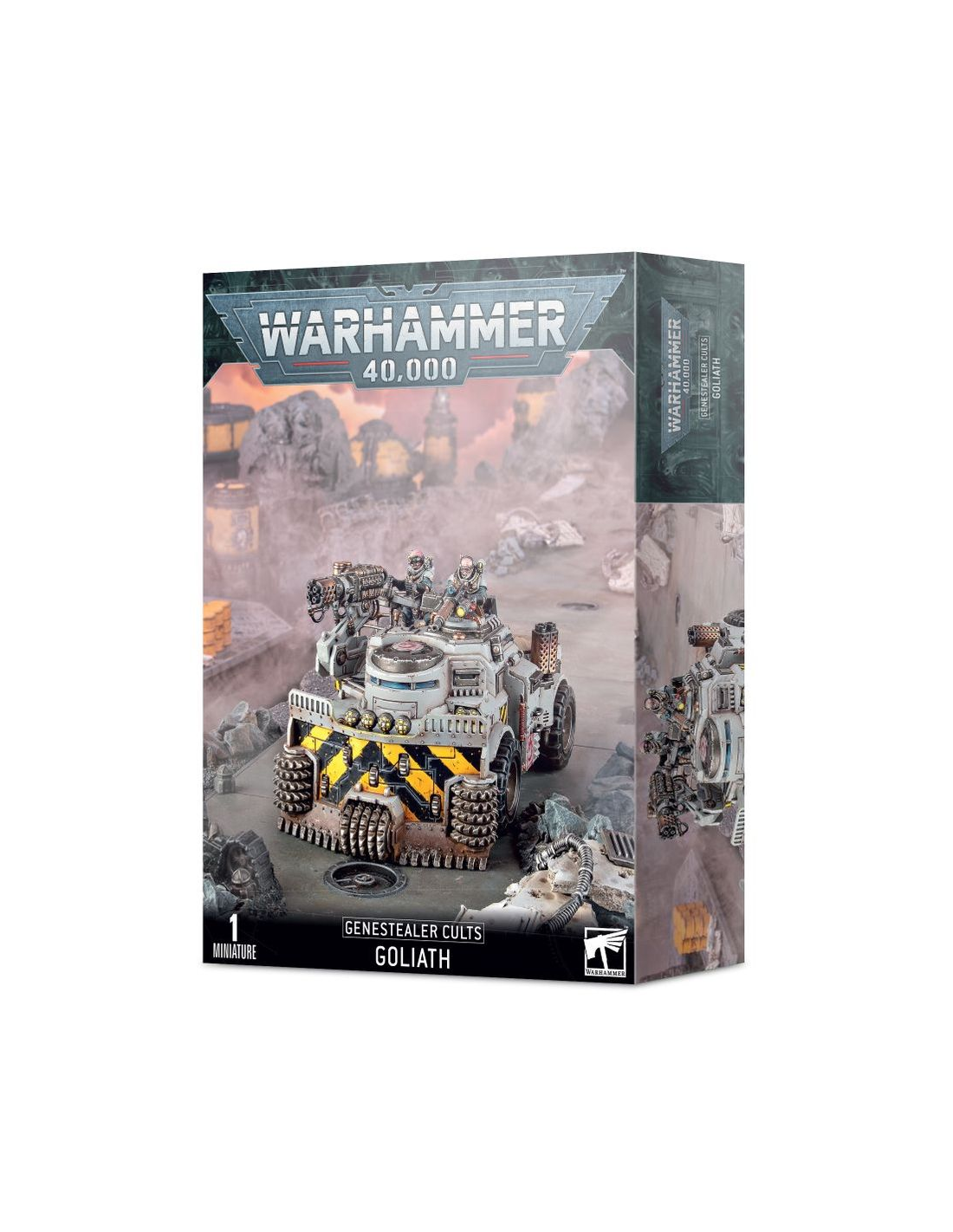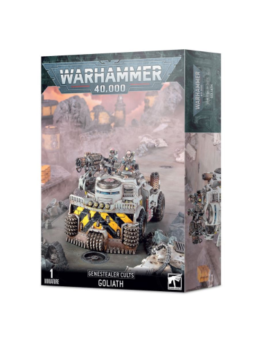 Este kit multicomponente de plástico contiene todas las piezas necesarias para montar un Goliath Truck, el transporte y vehículo de ataque de los Genestealer Cults. Está armado con una ametralladora pesada y un cañón automático acoplado y ofrece miles de opciones de personalización; los 4 tripulantes tienen sus propias opciones y las ruedas pueden montarse con la amortiguación más elevada para facilitar el tránsito en terreno irregular.