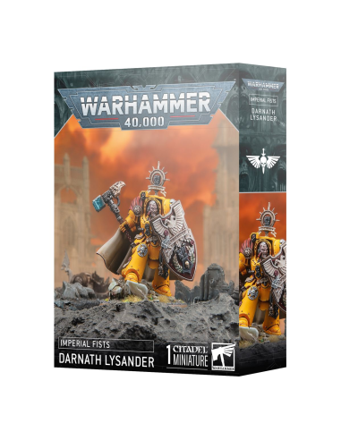 Con este kit multicomponente de plástico puedes montar a Darnath Lysander, un legendario guerrero de los Puños Imperiales para tus ejércitos de Marines Espaciales de Warhammer 40,000. Ataviado con una robusta armadura Exterminador y equipado con Muralla, su escudo de tormenta personalizado, Lysander atraviesa el fuego enemigo antes de descargar ataques devastadores con su martillo de trueno, el Puño de Dorn. Es ideal para dirigir tu fuerza a la victoria sobre el tablero de juego, y pintarlo será todo un desafío. Lysander viene con dos cabezas entre las que elegir: una con casco y otra descubierta.