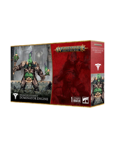 Con este kit multicomponente de plástico puedes montar un Ingenio Dominador, una máquina de guerra con efectos daemónicos para tus ejércitos de Herreros Infernales de Hashut de Warhammer Age of Sigmar. Estos emblemas de opresión andantes hacen astillas la tierra que pisan al avanzar inquebrantables por el campo de batalla. Cualquier necio que se ponga en su camino será aniquilado y su alma arderá eternamente en el infierno de Hashut.