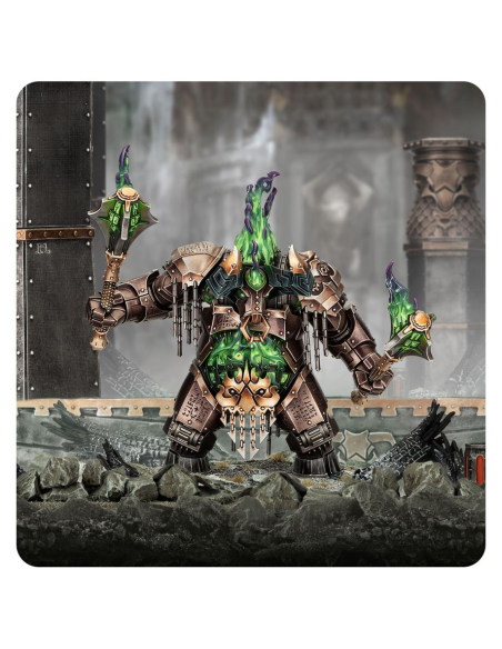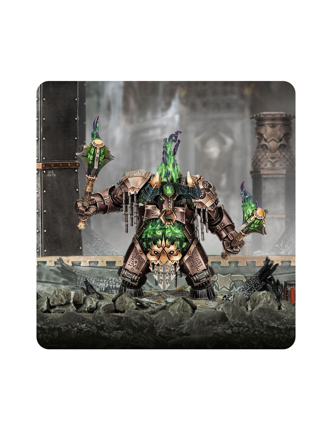 Creado a imagen de Hashut, el Ingenio Dominador es parte fragua ardiente, parte jaula de los daemons esclavizados que lo potencian. Del constructo surgen fuego y humo impíos, y su cuerpo está cubierto de runas para darle todavía más carácter a la miniatura y asegurar que los daemons atrapados no logren escapar. Puedes elegir entre mazas de perdición para aplastar a tus enemigos cuerpo a cuerpo o cañones inmoladores para abrasarlos de cerca. Incluye dos tabardos metálicos, dos juegos de cuernos y dos placas faciales para personalizar a tu autómata.
