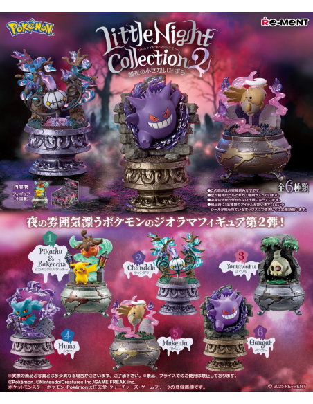 ¡La segunda serie de figuras diorama de Pokémon con temática del mundo nocturno! Incluye Pokémon ideales para la noche, como Gengar y Chandelure.