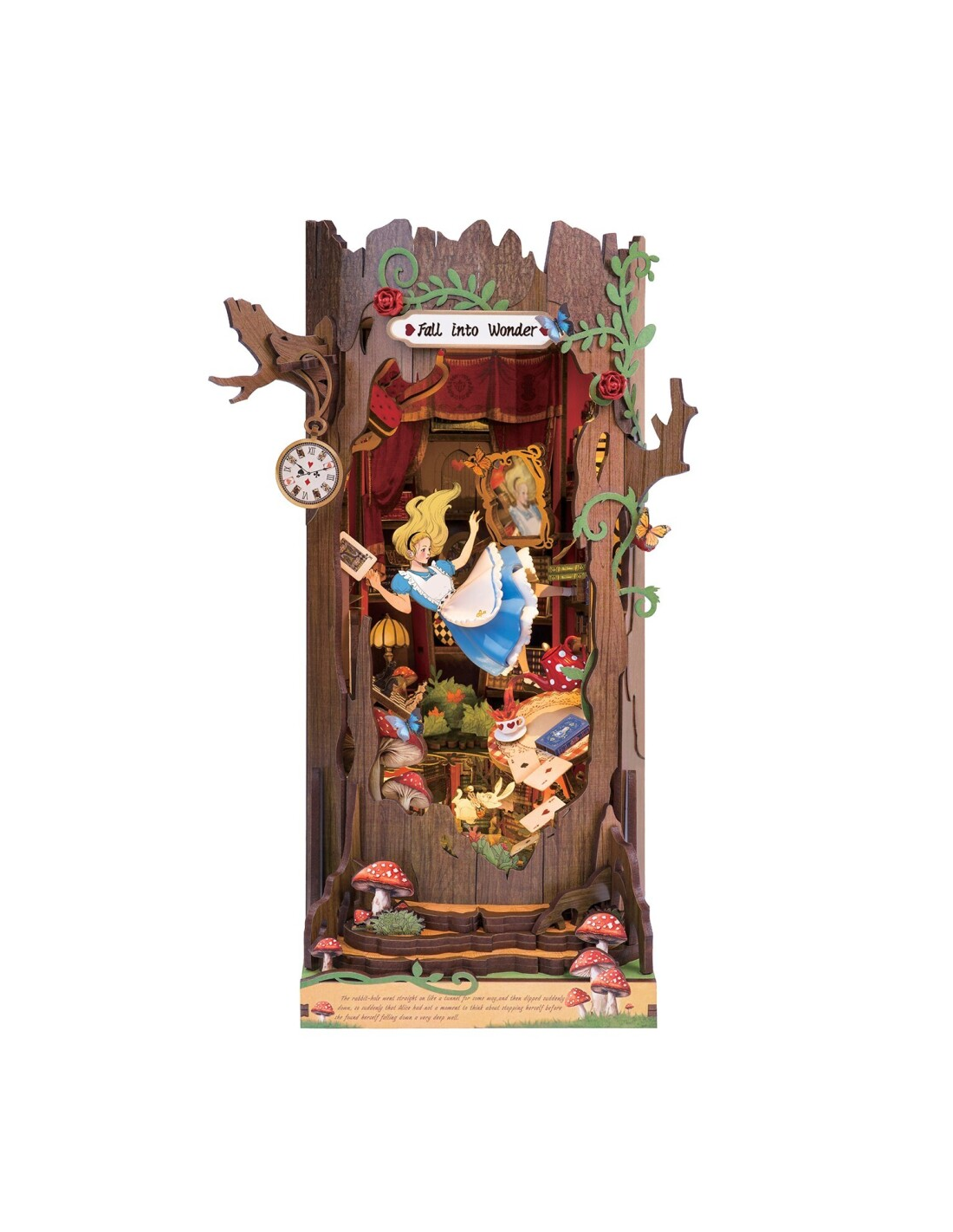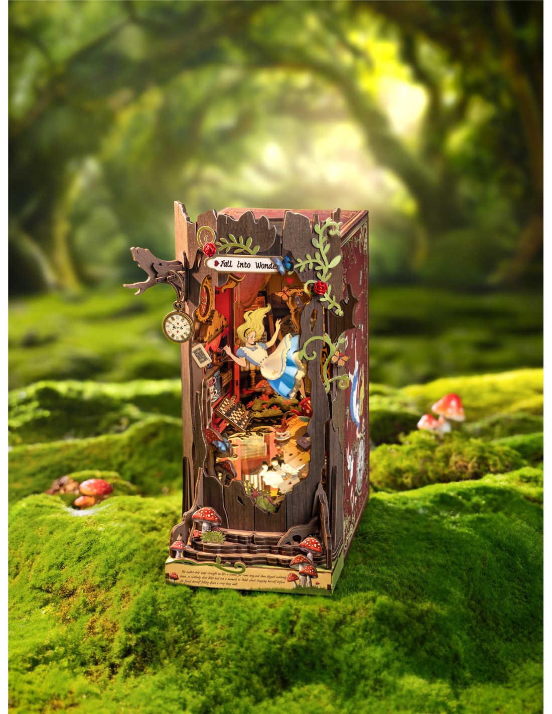 Adéntrate en un mundo de fantasía con el Rolife Fall into Wonder, un diorama DIY para estanterías que transforma cualquier librería en un portal mágico. Con un tronco de árbol como fachada, elementos retro, espejo infinito, setas interactivas y luz LED integrada, este kit DIY estimula la creatividad y ofrece horas de diversión. Fácil de montar gracias a sus piezas numeradas, es ideal como regalo, decoración o pasatiempo que combina imaginación, paciencia y orgullo de crear algo único con tus propias manos.