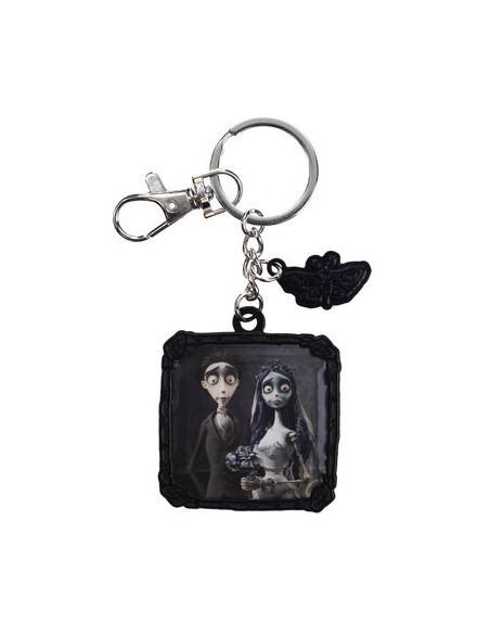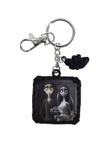 Este distintivo llavero metálico cuadrado presenta una imagen de Victor y Emily enmarcada en un diseño detallado que refleja el estilo oscuro y encantador de "La Novia Cadáver". Ideal para los coleccionistas, este llavero viene con el logo grabado en el reverso, asegurando que llevas contigo un producto oficial y de alta calidad.