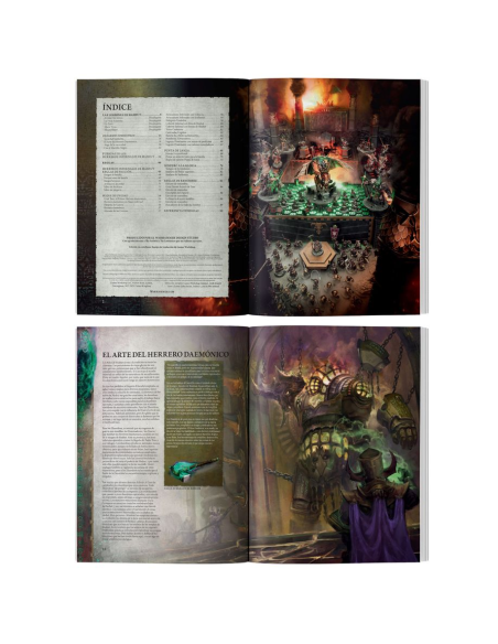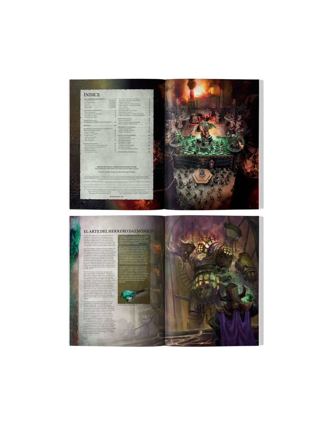 Además, el libro incluye un código de un solo uso para desbloquear el contenido del Tomo de batalla Caos: Helsmiths of Hashut en Warhammer Age of Sigmar: The App.