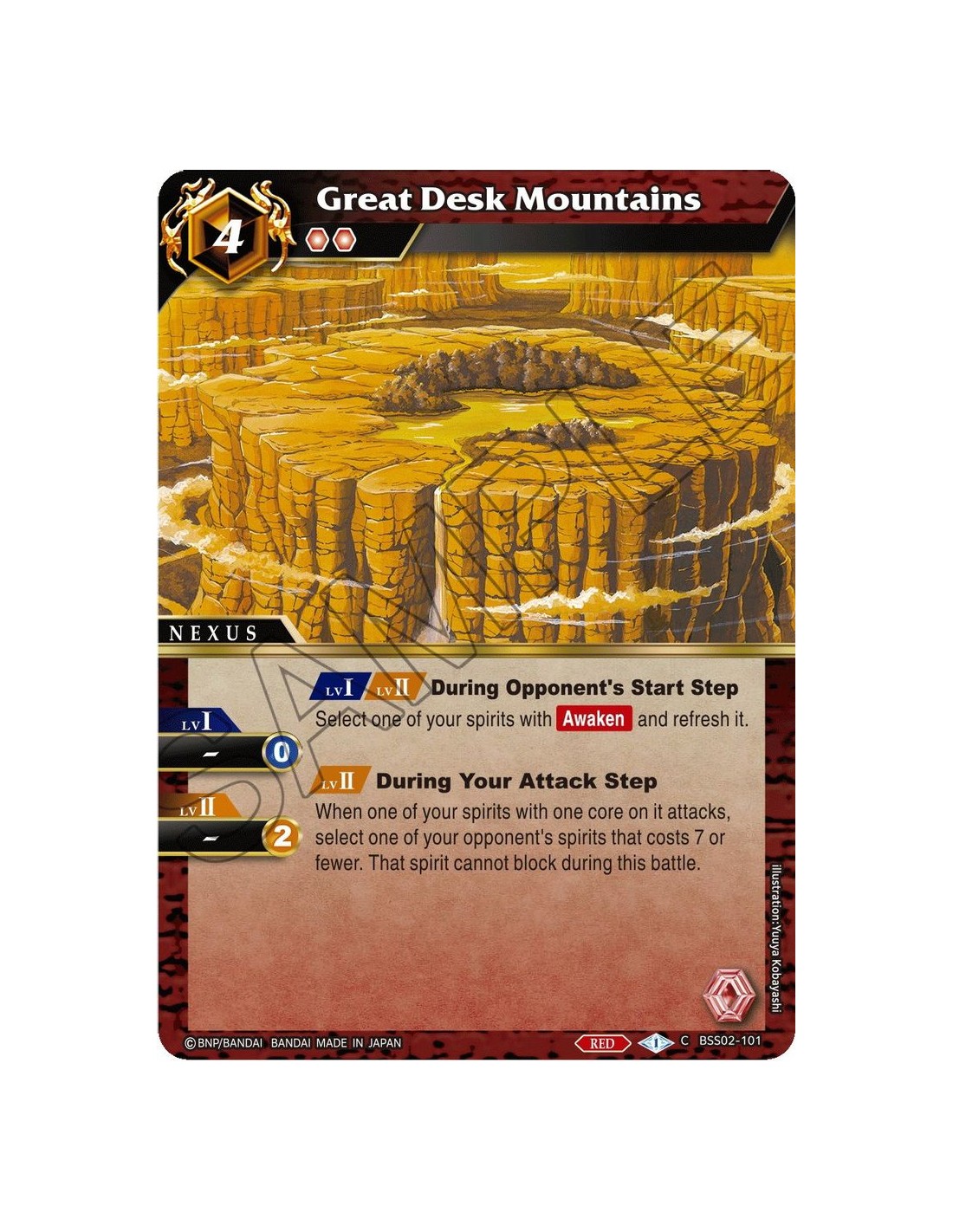 - [LV I] [LV II] During Opponent's Start Step Select one of your spirits with [Awaken] and refresh it. [LV II] During Your Attack Step When one of your