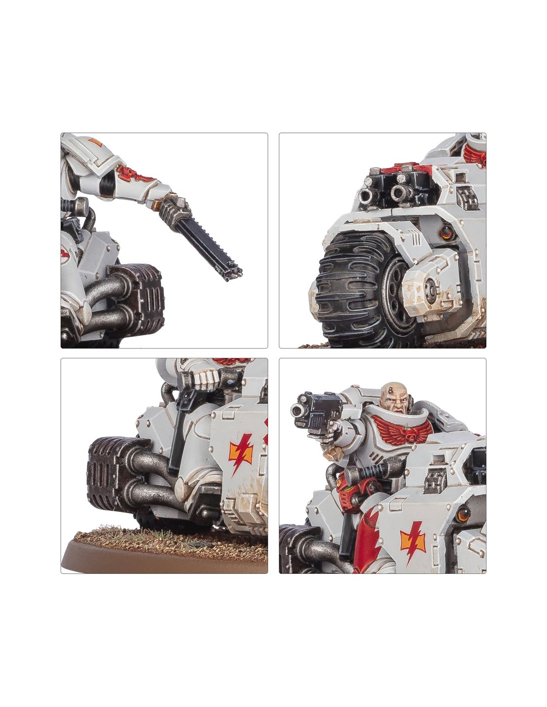 135,00 € -20%Los Cicatrices Blancas prefieren asaltos relámpago en los que chocan con el enemigo antes de que pueda prepararse, alejándose después a gran velocidad para golpear al siguiente objetivo. Emplean una cantidad mucho mayor de motocicletas que la mayoría de Capítulos de Marines Espaciales, y usan transportes rápidos para desplegar su infantería. Su fama de feroces y veloces es bien merecida.