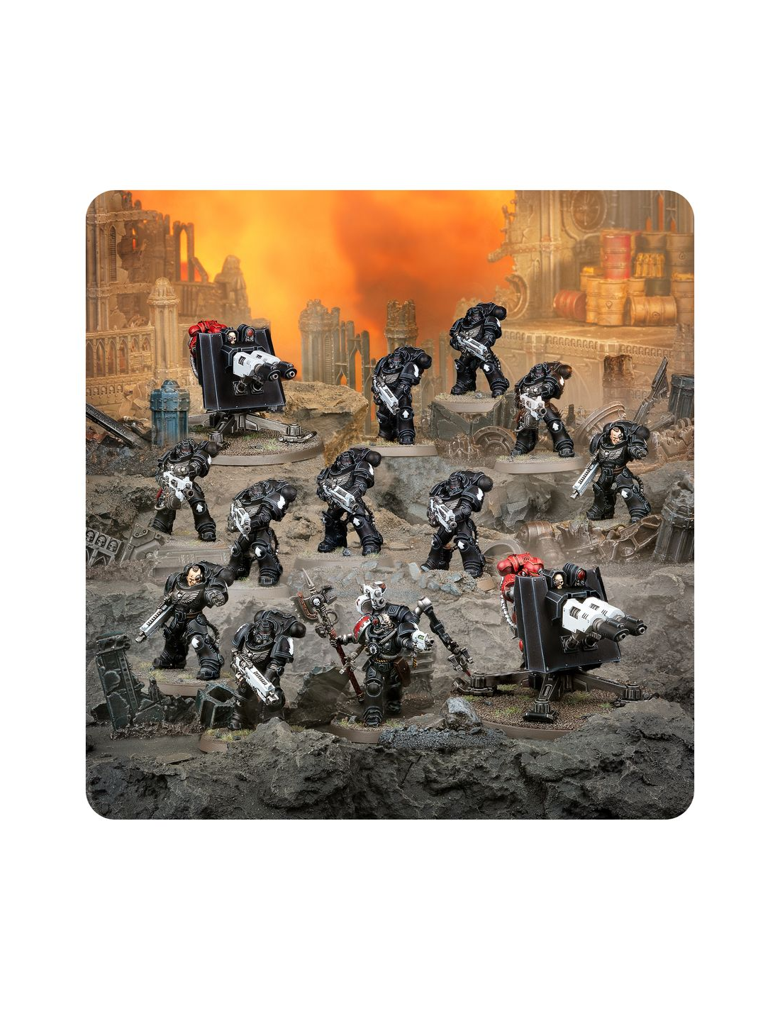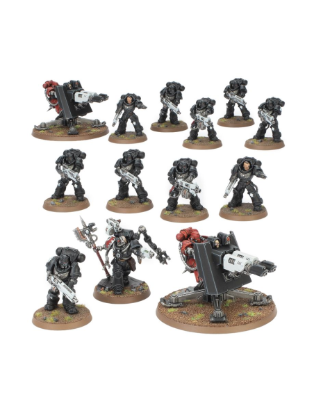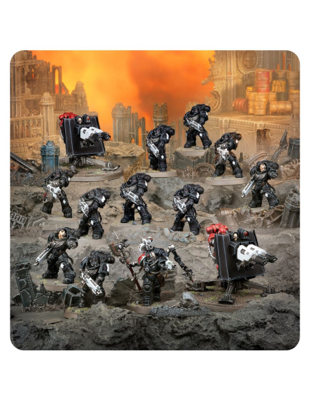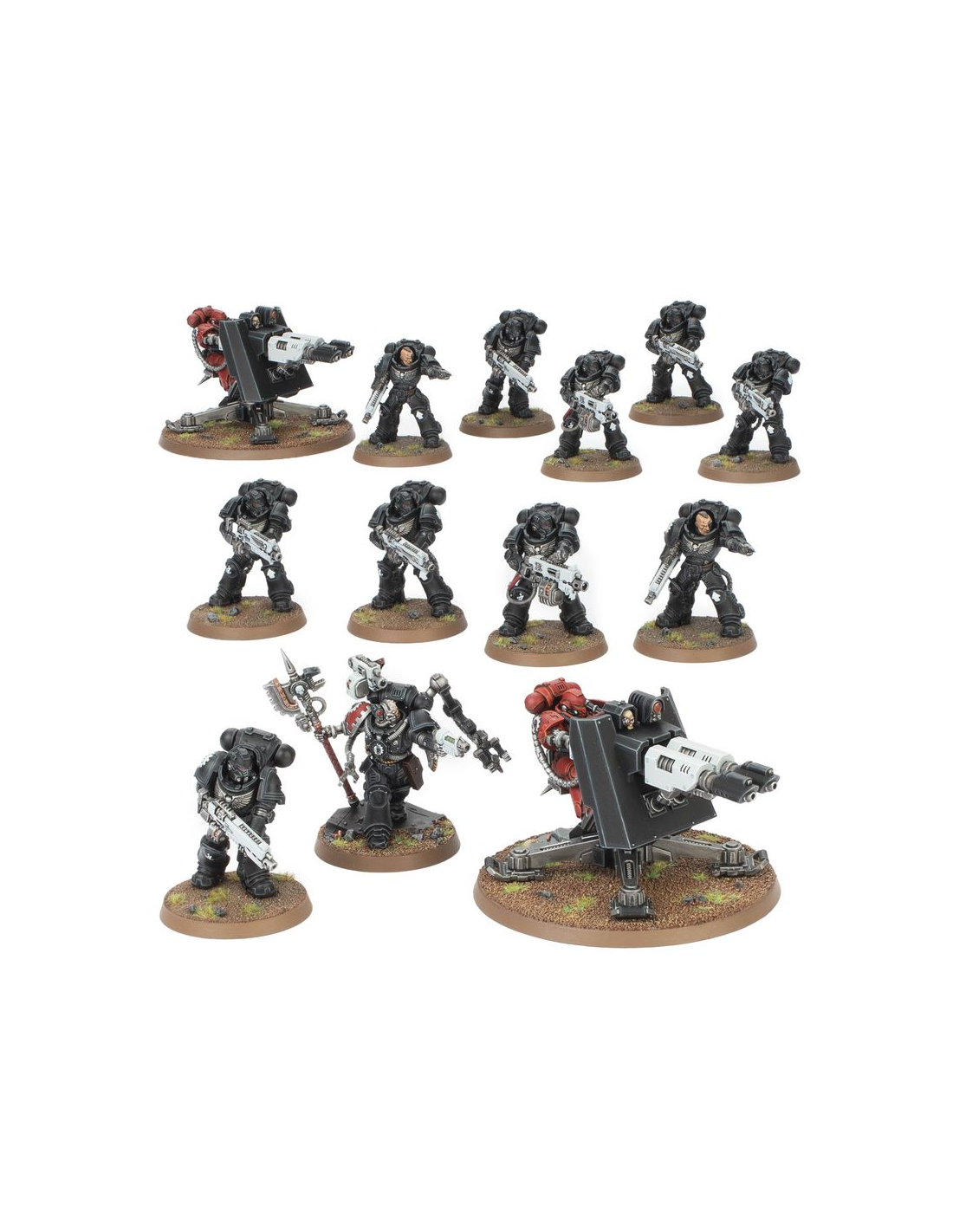 Si quieres usar la lógica fría para ejecutar a los enemigos del Imperium, esta caja es la forma perfecta de empezar o ampliar una colección de Manos de Hierro de forma más económica que comprando los kits por separado. Están liderados por un Tecnomarine bendecido con mejoras del Adeptus Mechanicus. Dos unidades de 5 Intercesores Pesados aguardan prestas para descargar sus rifles bólter pesados y tomar objetivos claves. Como apoyo, cuentan con dos Servotorretas Firestrike con armas pesadas para despachar a las unidades enemigas más duras. Estas trece miniaturas de plástico conforman una fuerza completa de Manos de Hierro para usar en disputadas partidas tácticas del formato Patrulla de Warhammer 40,000. Puedes descargar gratis las reglas para esta Patrulla del sitio web de Warhammer Community.