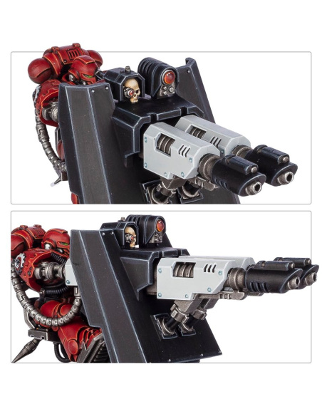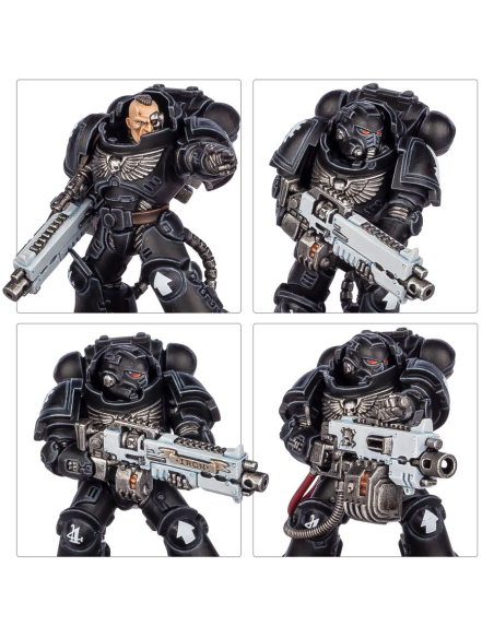 Los Intercesores Pesados están equipados con rifles bólter pesados, y hasta dos pueden mejorarse con bólteres pesados. Hay piezas para montar hasta dos sargentos opcionales, opciones narrativas como el gesto de recargar un arma, y piezas estéticas, sellos de pureza, pistoleras y cartucheras.