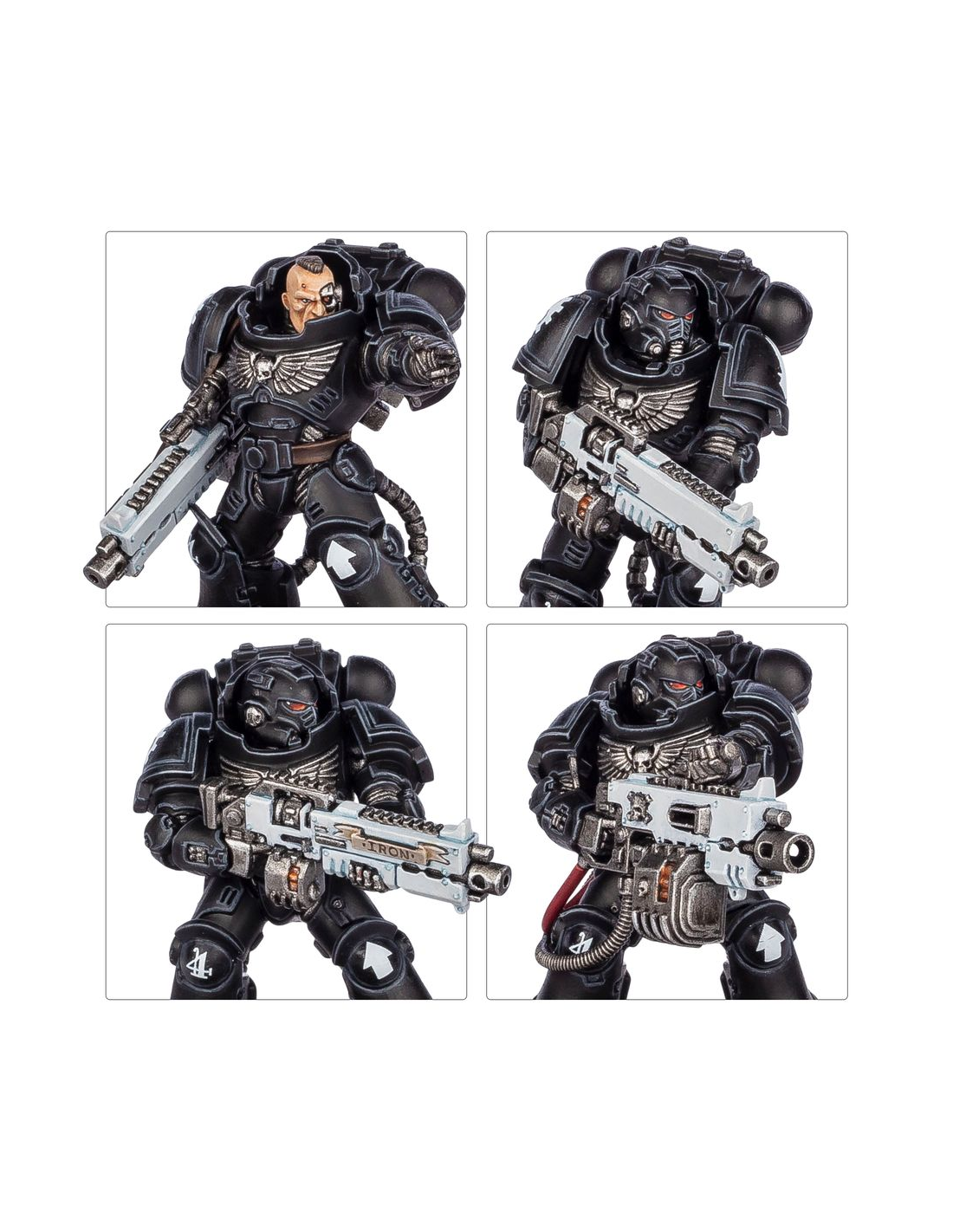 Las miniaturas de la caja son fácilmente personalizables. El Tecnomarine puede elegir entre dos cabezas una con casco y otra descubierta y una mano abierta o una pistola grav.