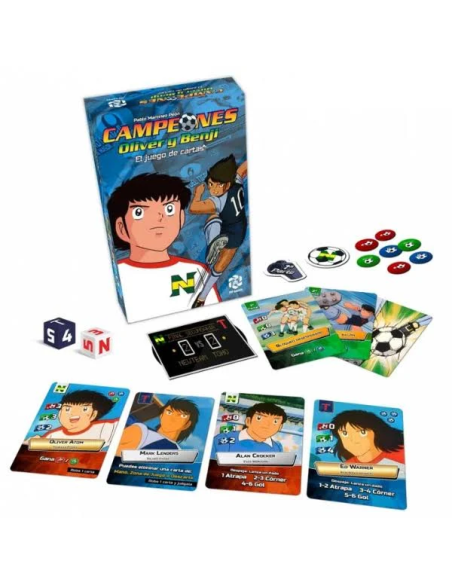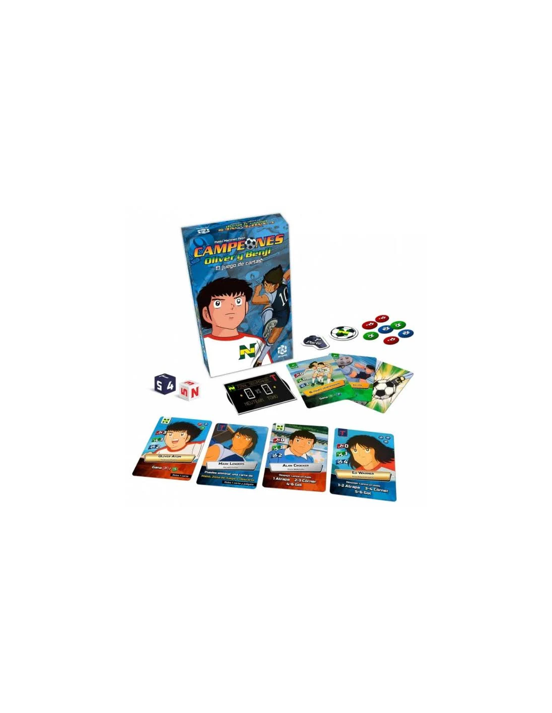 CAMPEONES (OLIVER Y BENJI) EL JUEGO DE CARTAS. Prepárate para la emocionante experiencia de Campeones, Oliver y Benji: El juego de cartas. Sumérgete de lleno en el electrizante mundo del fútbol, donde cada carta en tu mano puede ser el factor decisivo. Con el partido desarrollándose en dos partes llenas de adrenalina, la única misión es superar a tu oponente con goles. Elabora tu equipo de ensueño antes del inicio seleccionando estratégicamente cartas de jugadores que prometen grandeza. El arsenal del juego cuenta con 90 cartas, que incluyen equipos, aficionados, jugadas y eventos emocionantes. A lo largo del juego, la emoción se intensifica mientras robas cartas, desatas movimientos estratégicos y ejecutas acciones decisivas como pases habilidosos, tiros espectaculares y defensas impenetrables. Utiliza cartas y fichas estratégicamente para elevar a tu equipo a nuevas alturas. A medida que compras cartas para fortalecer tu escuadra, siente la emoción de acumular puntos de equipo y desarrollar nuevas estrategias. Sumérgete en los momentos emocionantes de pases, tiros y defensas, donde los valores de las cartas y las fichas determinan quién emerge victorioso del enfrentamiento. Cartas especiales, como las tarjetas amarillas, tarjetas rojas y el árbitro, añaden intriga y estrategia al juego, mientras que eventos como lesiones pueden cambiar el curso del partido. Campeones, Oliver y Benji: El juego de cartas ofrece una experiencia única donde la estrategia y el azar se mezclan en cada carta jugada.