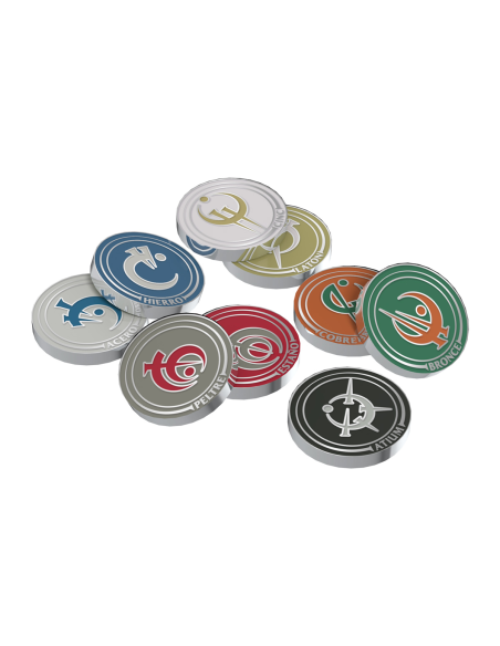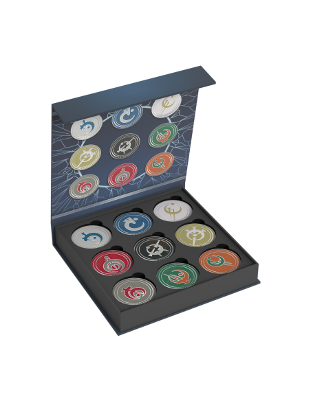 Lleva tus partidas a Nacidos de la bruma, el juego de construcción de mazos, a otro nivel con este conjunto de fichas de metal esmaltadas de cada uno de los 9 metales del juego (hierro, acero, estaño, peltre, atium, bronce, cobre, latón y cinc). Estas fichas, también perfectas para los coleccionistas y amantes de la obra de Brandon Sanderson, vienen en un estuche exclusivo con cierre imantado.