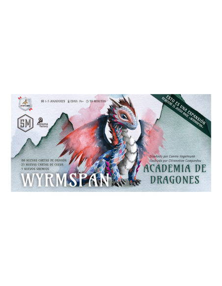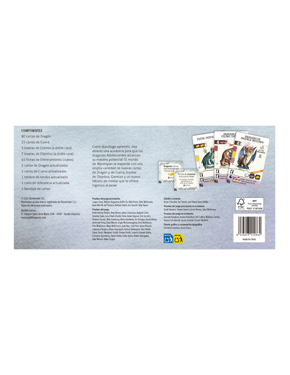 Como dracólogo aprendiz, ¡has abierto una academia para que los dragones Adolescentes alcancen su máximo potencial! El mundo de Wyrmspan se expande con una amplia variedad de nuevas cartas de Dragón y de Cueva, losetas de Objetivo, Gremios y un nuevo tablero de rondas que te ofrece ingresos al pasar.