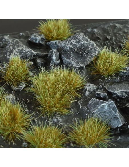 Slightly brownish green tufts. Best used to simulate mediterranean types of prairies, steppes, low scrubs and woodland ground layers, when some drier climate character is wanted. Also perfect to increase colour variation to your scenes, when mixed with other colours and sizes.