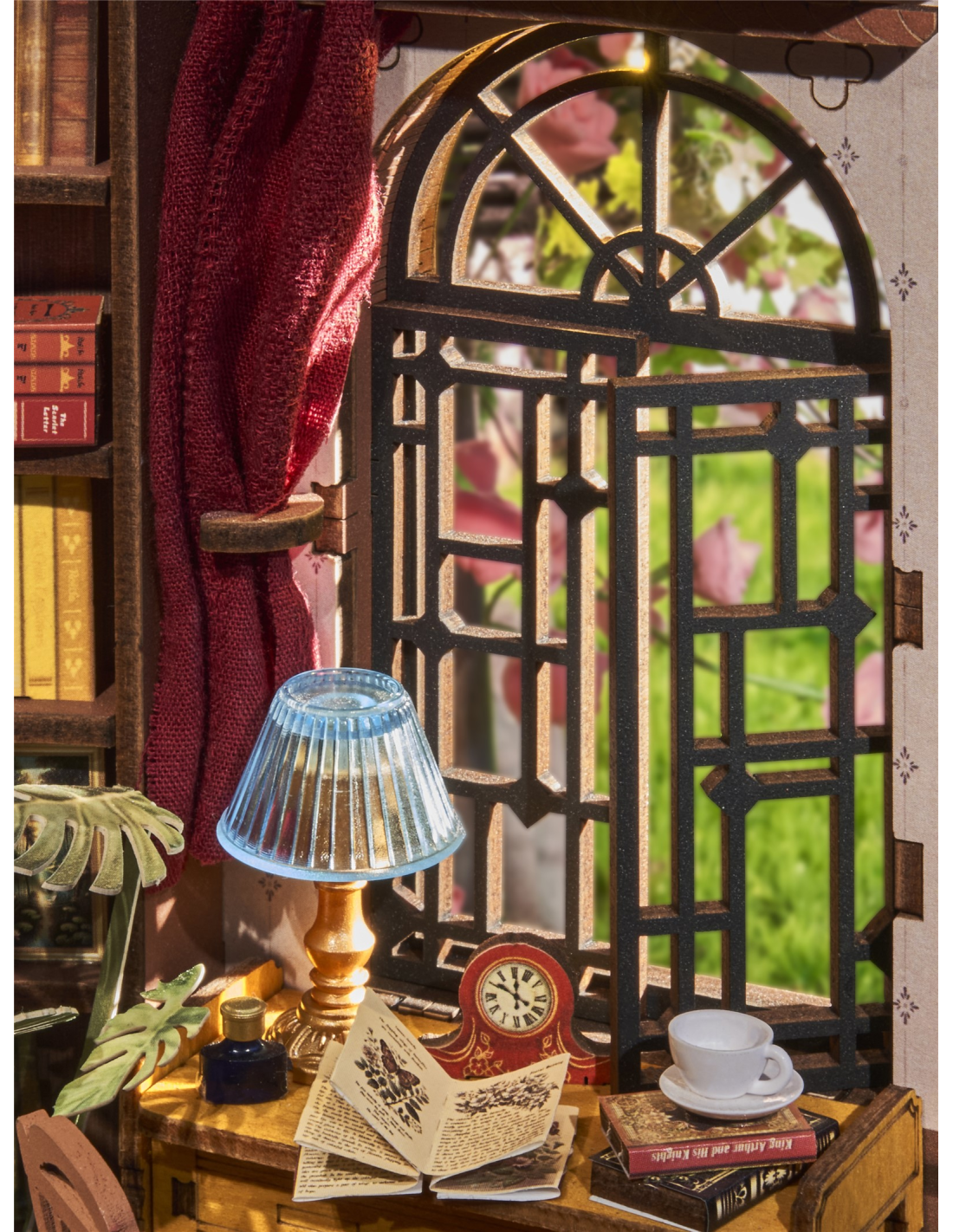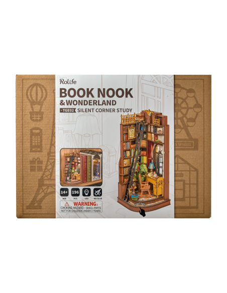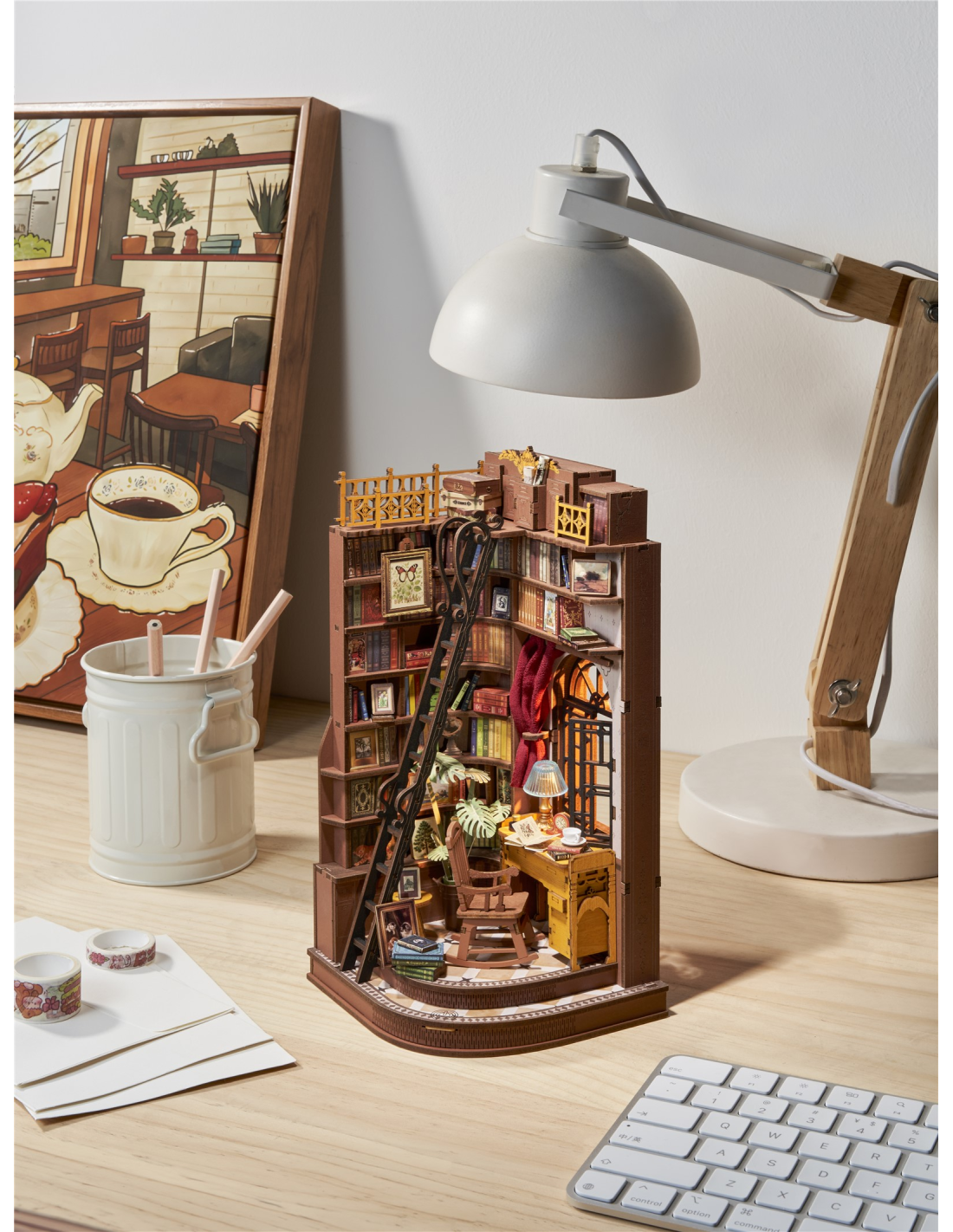 Encuentra tu refugio personal con el Rolife Silent Corner Study, un diorama DIY para estanterías que recrea un rincón de estudio tranquilo con escritorio vintage, lámpara, libros apilados y luz LED integrada. Fácil de montar gracias a sus piezas numeradas, este kit es ideal como regalo, decoración o pasatiempo que combina creatividad, paciencia y el placer de construir algo único con tus propias manos.